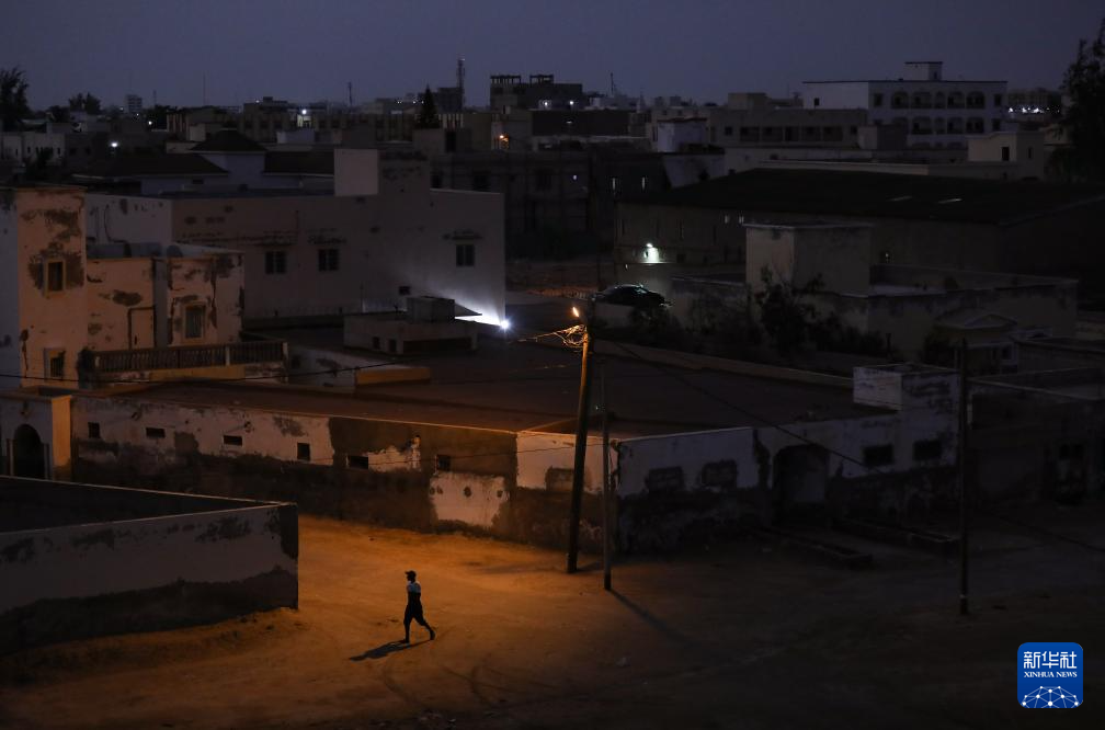这是7月14日在毛里塔尼亚首都努瓦克肖特拍摄的街头夜景。