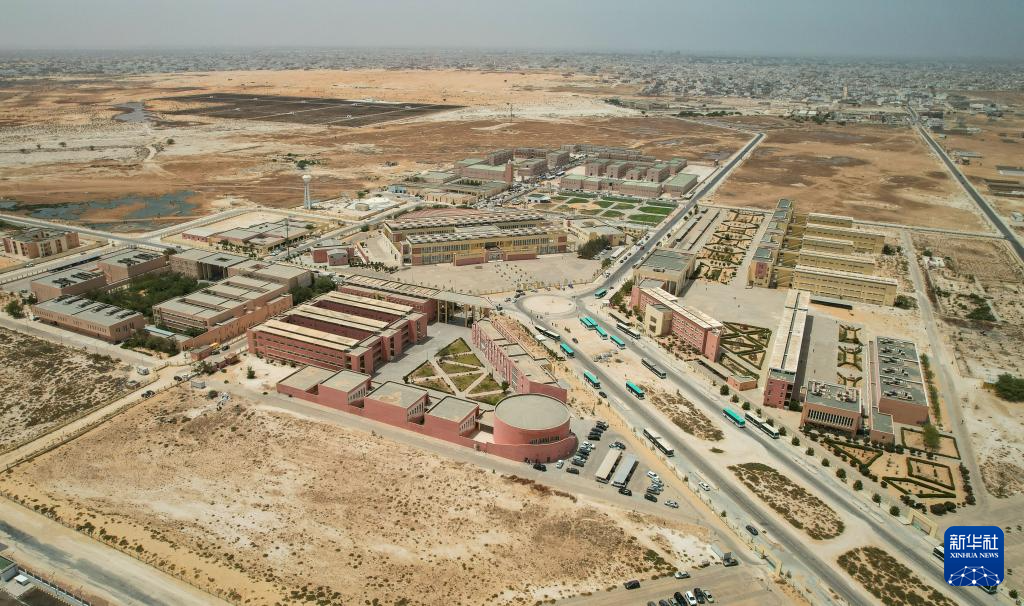 这是6月17日在毛里塔尼亚首都努瓦克肖特拍摄的努瓦克肖特大学一隅(无人机照片)。