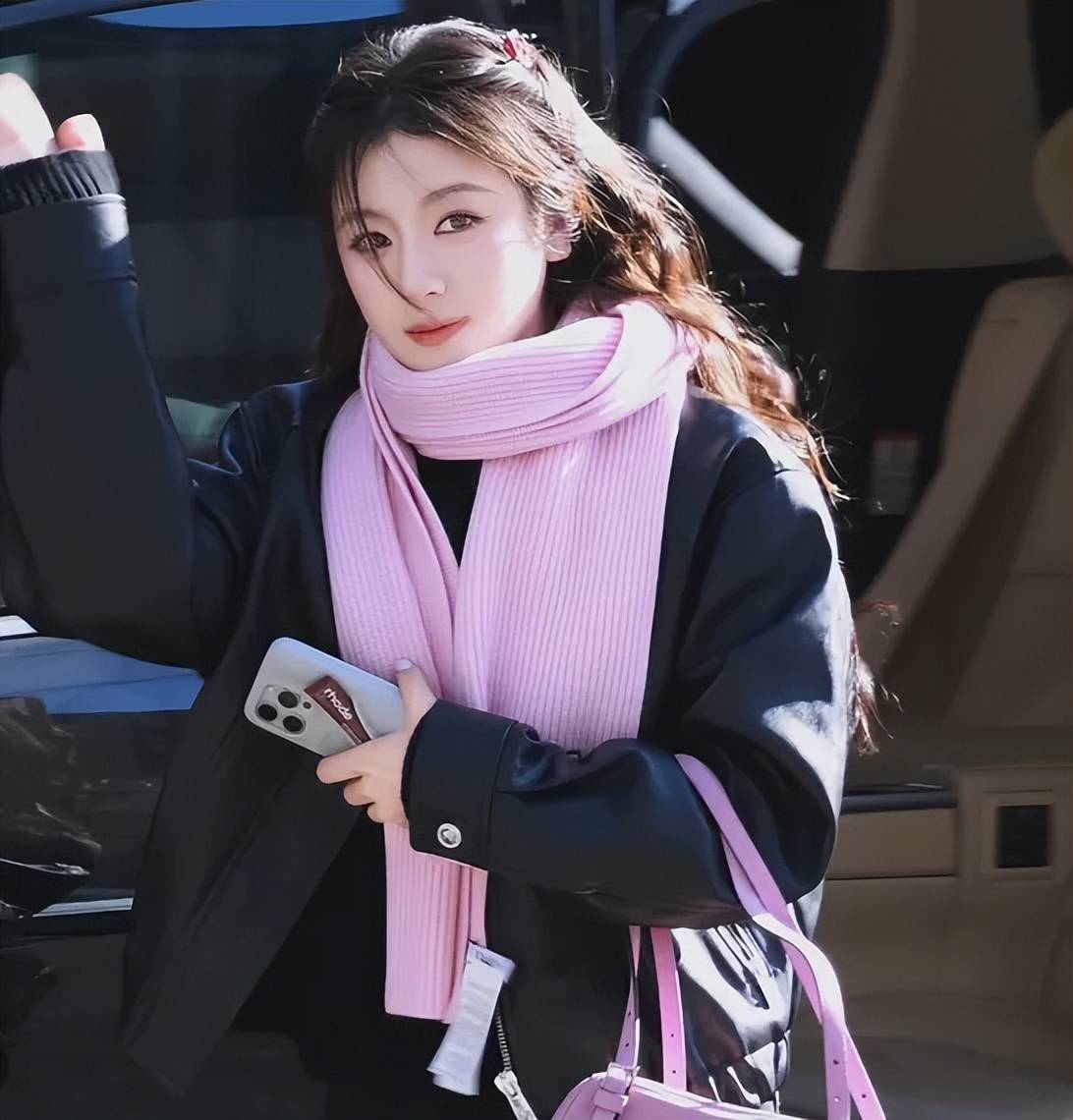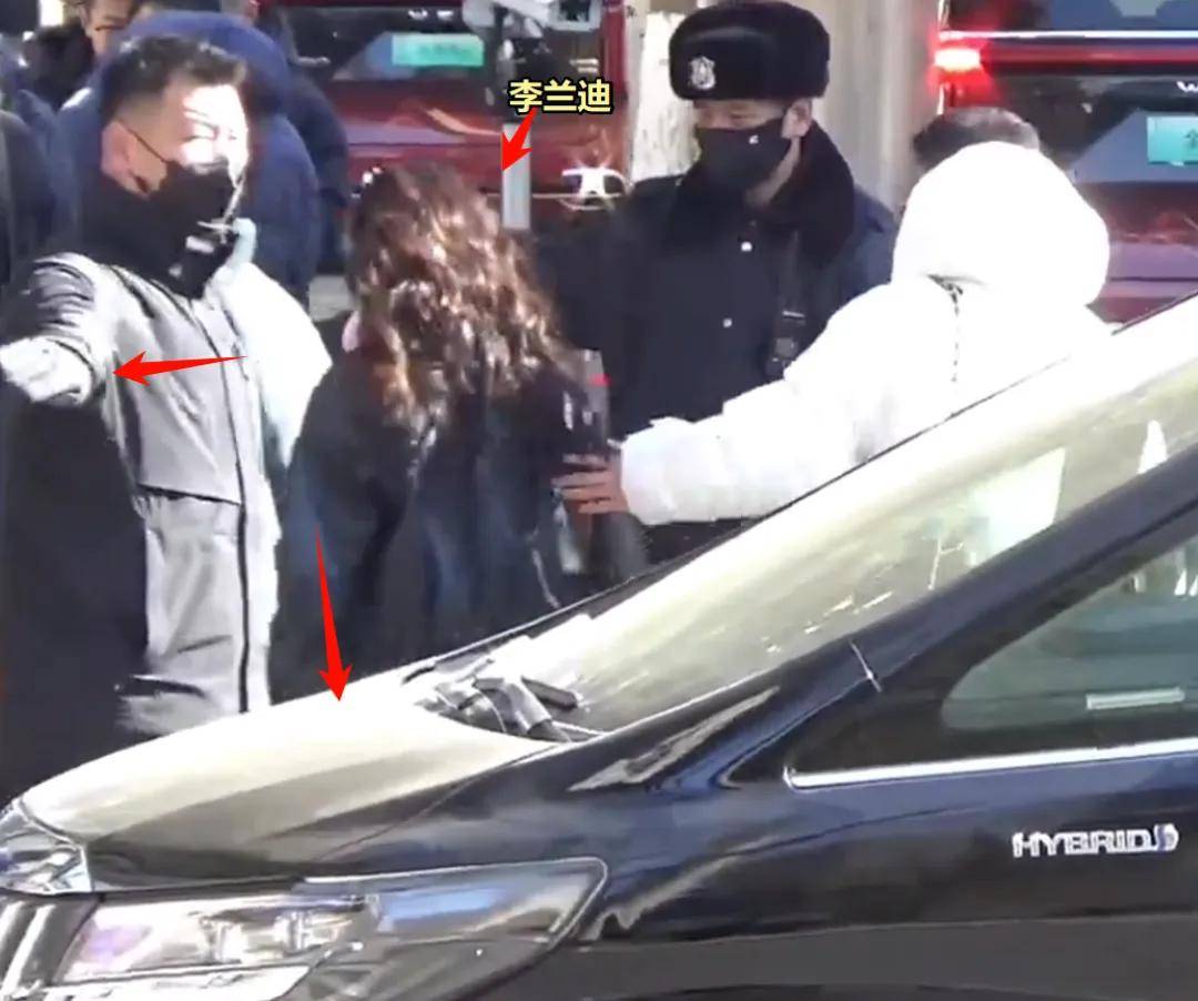 李兰迪一身黑色穿搭,戴着浅紫色围巾现身,下车后也没有关车门,当时似乎门口还有些堵车,一直在催司机离开。如果能随手关车门的话,司机就能早点开走了吧。